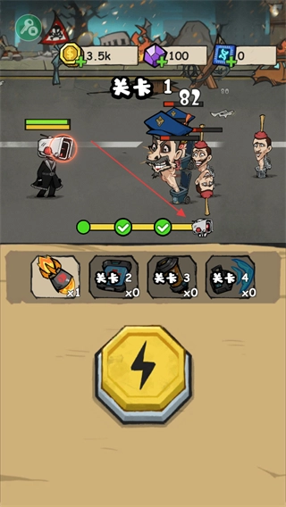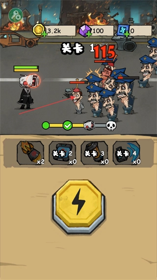 2、敌人出现后,点击下方闪电按钮,释放技能攻击敌人,快速削减其数量。