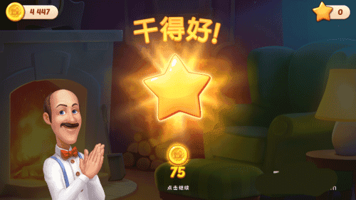 成功过关之后,就会获得任务所需要的星星了,同时还有过关奖励的一些金币,这个时候就可以回去完成更换家中物品的任务了。