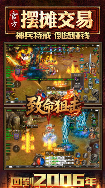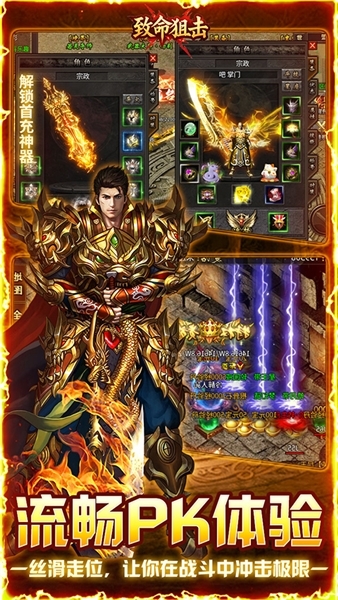 致命狙击传奇版隶属1.76神器微变品类的三职业传奇游戏,整体采用复古风格打造,其场景画风与人物建模均洋溢着经典传奇的独特韵味,足以唤醒玩家对传奇游戏的熟悉记忆。游戏场景的绘制细致入微且极具真实感,无论是幽暗的地牢还是雄伟的城池,都彰显出制作团队的匠心巧思。