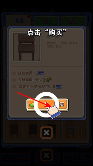 4、在购买界面点击购买按钮,消耗资源获取新设备,提升网吧的硬件配置以吸引顾客。