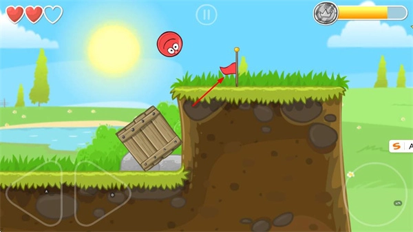 1、控制红球在关卡里移动,避开障碍物,向着目标旗帜行进,完成关卡挑战。