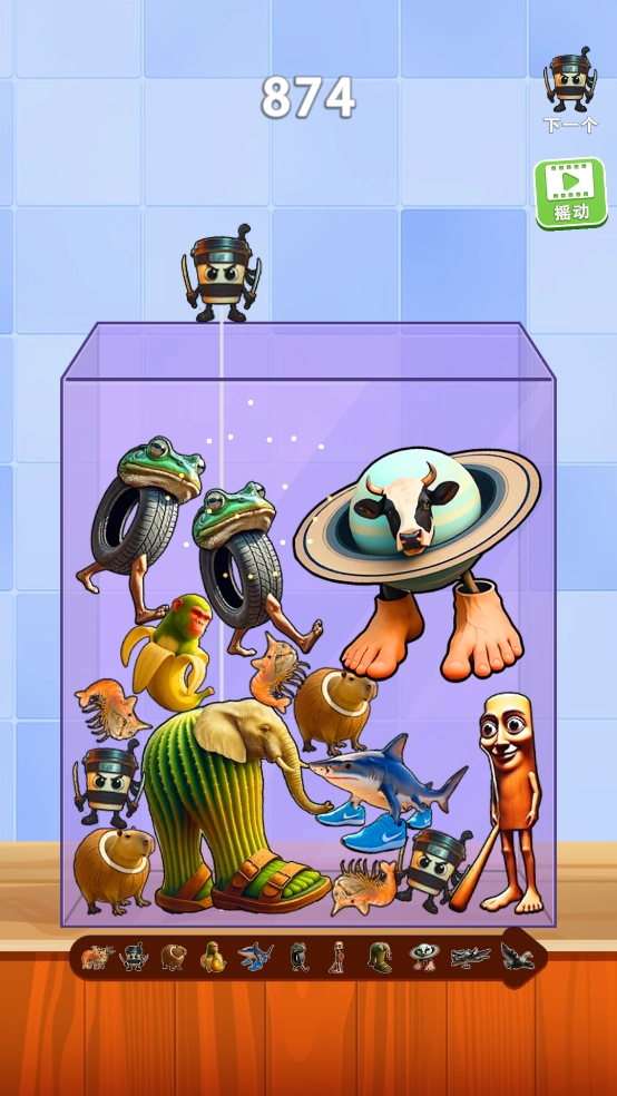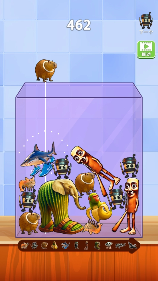 《合成外国山海经》是一款趣味合成消除小游戏,英文名叫做Meme Merge: Drop Puzzle,十分值得推荐!游戏里有不少由AI生成的奇特动物,玩家需要将掉落的动物进行合成,融合后就能诞生全新物种。它玩法简单,画面风格独特诡异,玩起来别有一番趣味体验!