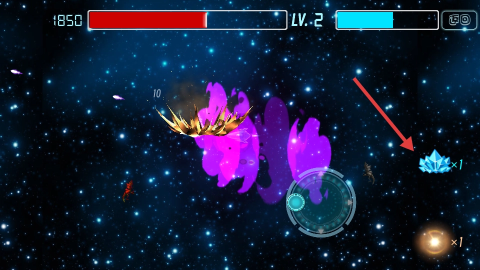 1、借助虚拟摇杆操控战机移动,点击屏幕发射武器来消灭虫族。