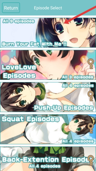 2、进入剧集选择界面,点击顶部的和我一起燃烧脂肪剧集,开启系列一共9集的减肥主题剧情。
