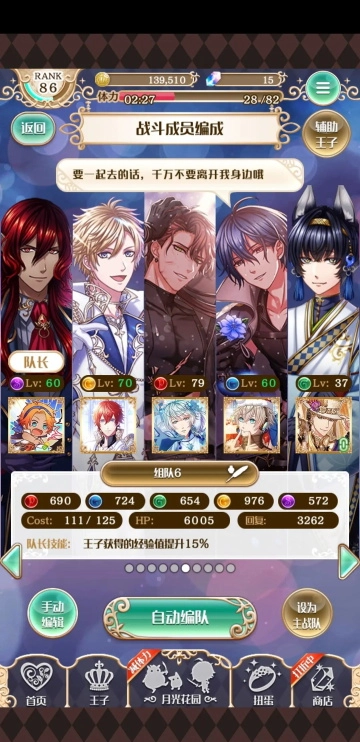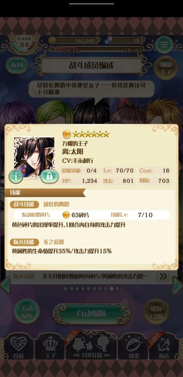 当然如果你没有一队纯色也不需要强求,在有时候为了打活动(活动加成王子属性不一样)我会选择活动加成优先。