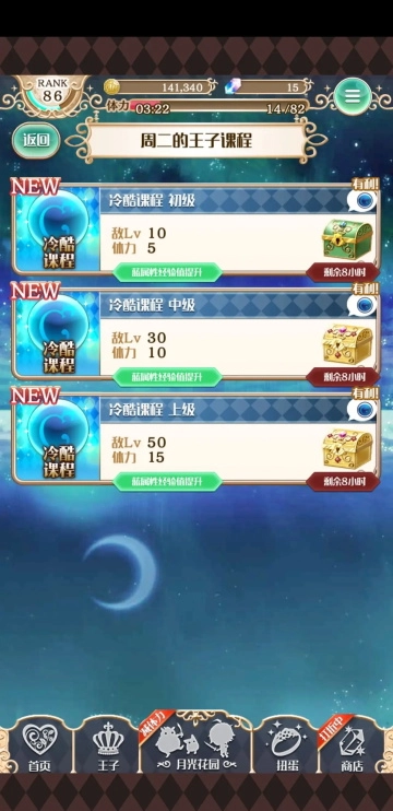 游戏中每个王子都拥有独立的个人故事,玩家可以通过提升与王子的亲密度来解锁,其中还包含大量语音和情节,玩家还可以与王子们加深羁绊。而且游戏还会定期举办各种主题限时活动,为玩家提供新的故事、关卡和限定王子卡牌。