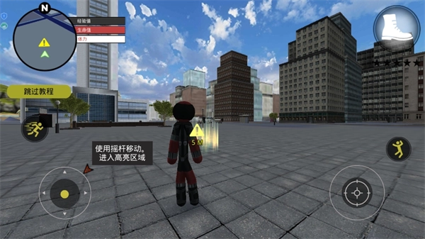 1、用左侧摇杆控制角色移动,按提示进入高亮区域,跟随指引完成任务流程。