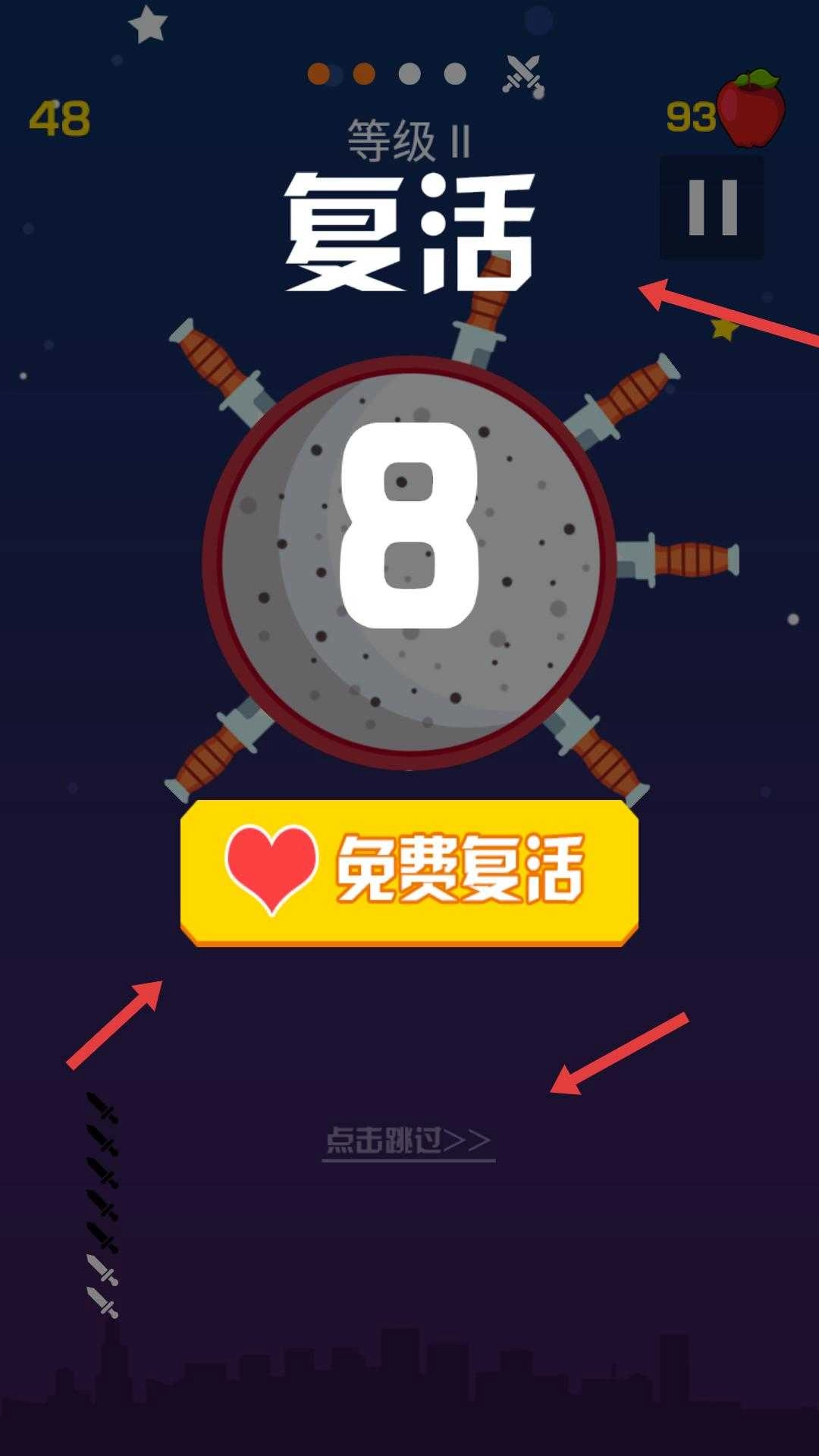 4、想要获得更高的分数,需要提高你飞刀的技巧;