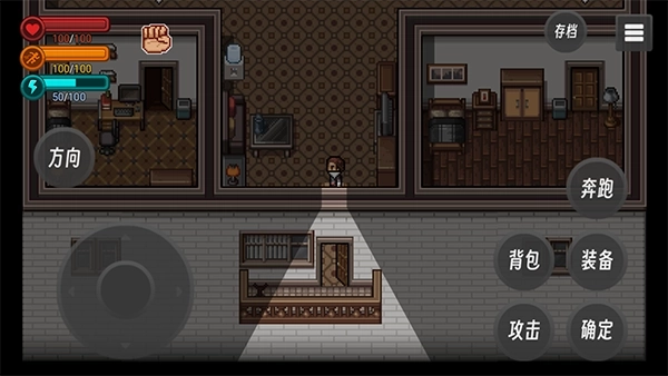 方向键长按锁定朝向,松开即解禁,这个设计让你能在狭窄楼道里卡视角,让丧尸永远追着你的背影打转。