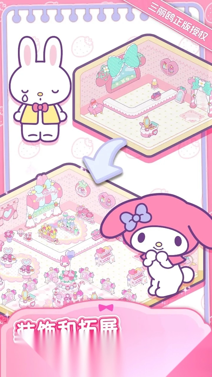 2. 重建梦想购物城:帮助Hello Kitty和库洛米修复荒废的购物城,开启各类商店。在重建的过程中,感受那些温暖人心的治愈故事,体会成长与友谊的力量。