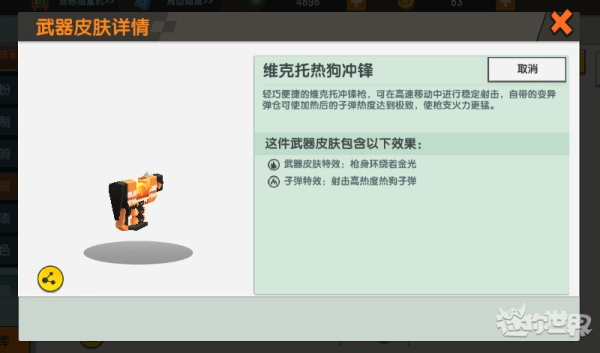 每一种武器都有属于自己的效果,比如说“维克托热狗冲锋枪”会带有独特的金光特效,同时子弹也有不一样的呈现效果哦!