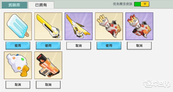 同时,如果开启“优先展示皮肤”的开关,各个模式里就会优先显示皮肤;要是关闭这个开关,地图中则会优先展示微缩模型哦!冒险家装备好武器皮肤后,进入游戏切换不同武器时,就会呈现对应的皮肤啦。是不是特别简单呀!