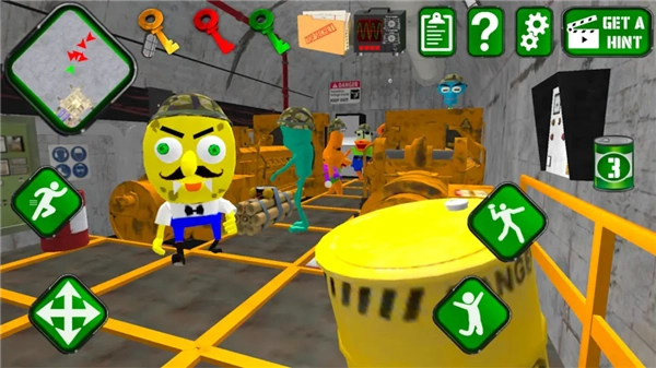 海绵邻居基地版是以海绵宝宝为题材打造的逃生游戏,玩家在游戏里要扮演海绵宝宝的朋友,他邀请你前往51区军事基地游玩,可基地里全是恐怖的外星人,他们还想把你灭口,你得赶紧逃离。不过你能通过拾取和投掷物品击晕敌人,为自己争取逃脱的时间。感兴趣的用户,快来体验海绵邻居基地版游戏吧!