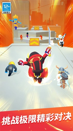 3、参与多人在线竞技,与其他玩家同场比拼反应与操作,合理使用道具干扰对手或保护自己,争夺第一名完成比赛胜利。