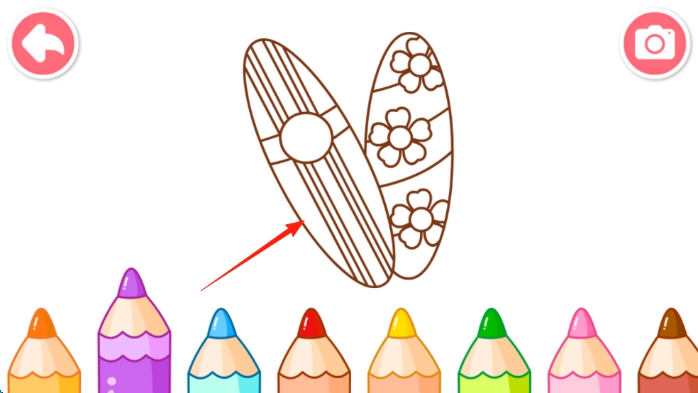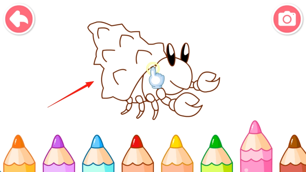 2、点击图案,切换涂色页,用手指点选颜色,涂抹线条,完成上色。