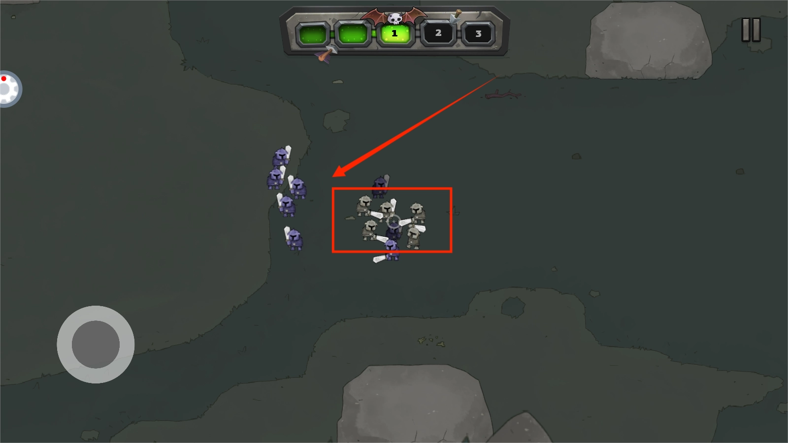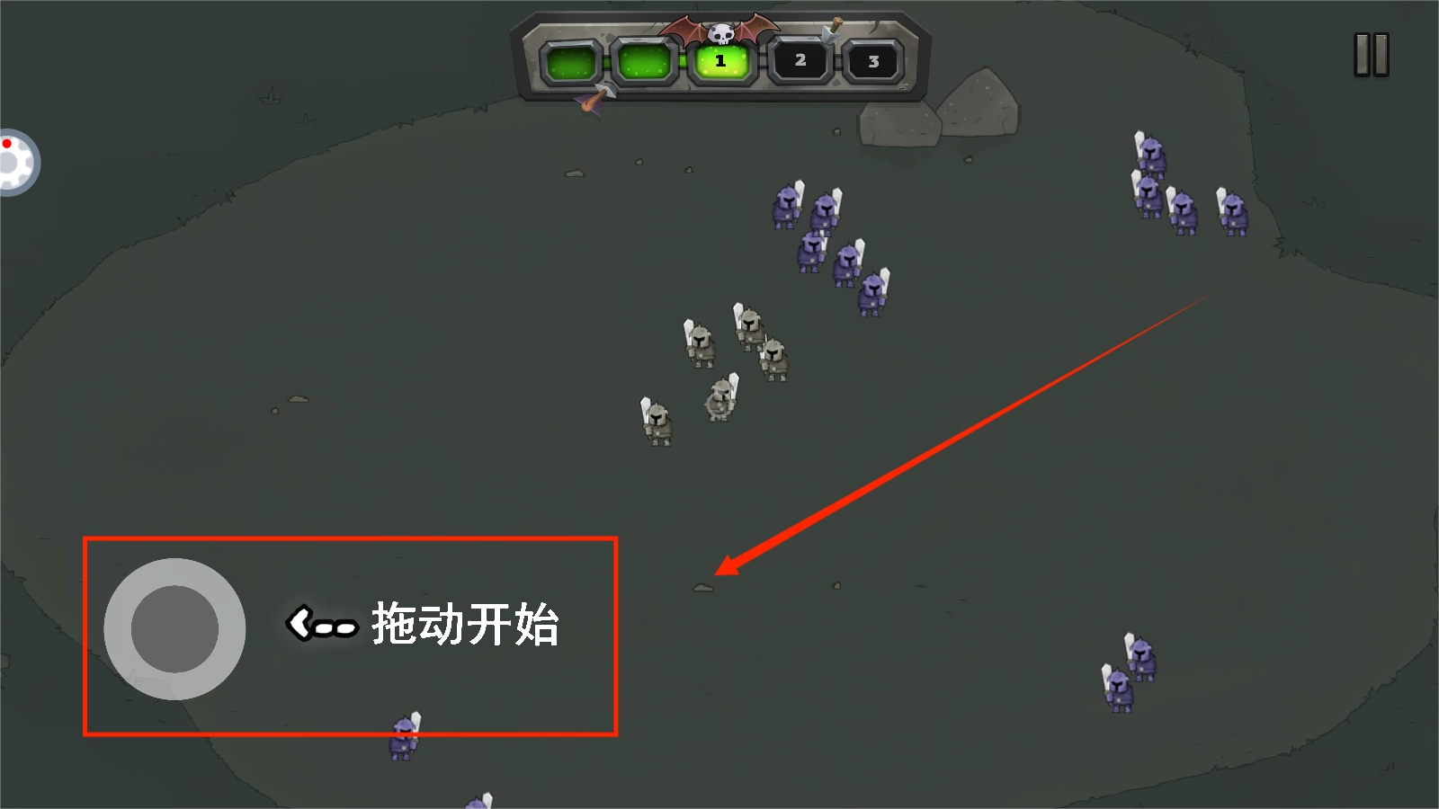 1、核心操作采用划指布阵与点触施法结合,拖动编队形成包围圈,点击释放英雄技能。特殊地形如沼泽会减速单位,需分兵包抄或集中突破。