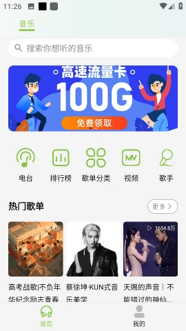 2、这里有电台、排行榜、歌单、视频、歌手的不同分类频道