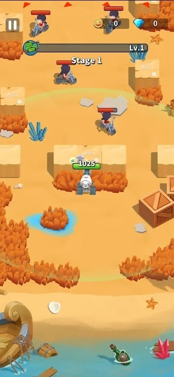 1、玩家在操控战车作战的同时,还需学会利用各类地形与障碍物实施防守和攻击,这是一项对智力与反应力都极具考验的技能。