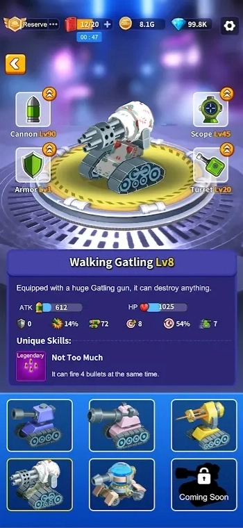 2、游戏中提供了各种各样的升级方法,通过收集资源、做任务等方法,可以让自己的战车变得更加强大,也可以解锁更高等级的武器与装备。
