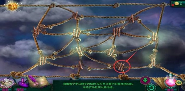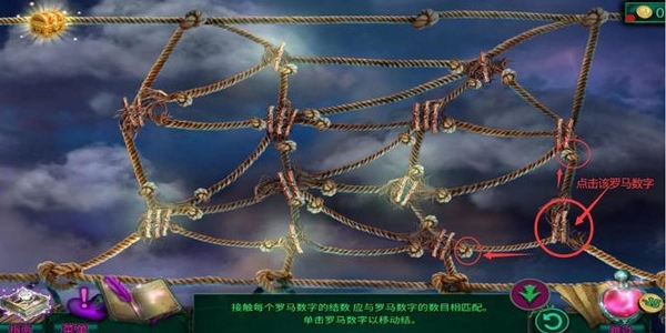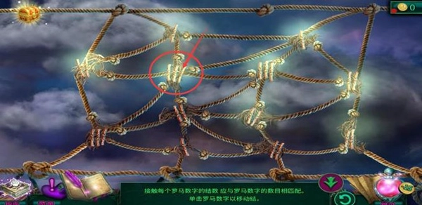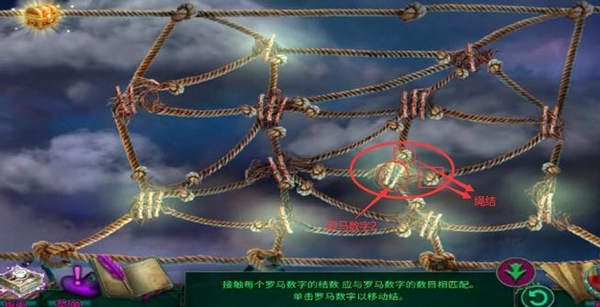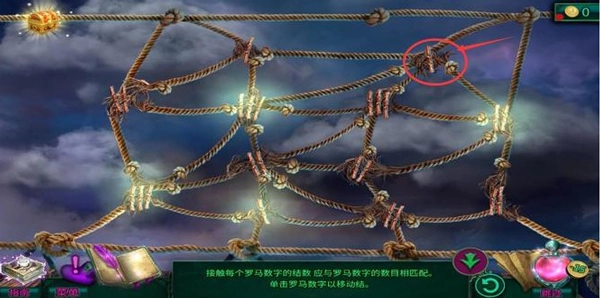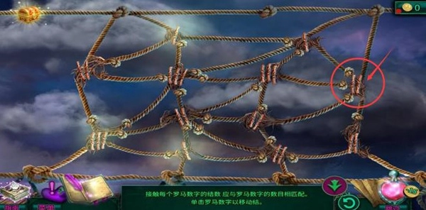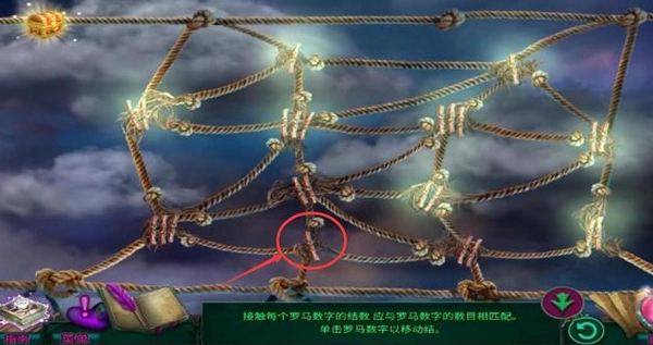 7、点击如下图所示位置,这样所有绳结和数字都会相匹配,全部罗马数字都会亮起,即可完成通关
