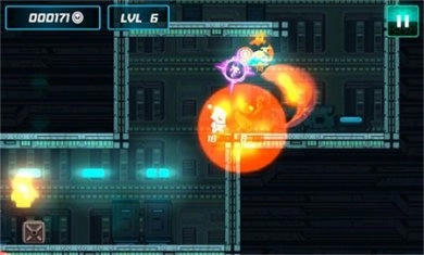 2、躲避敌人的攻击,敌人的攻击都是直线的子弹,飞行速度慢,换弹速度慢,一个敌人非常好躲避并且杀死,但是敌人一多就难了,我们需要充分利用二段跳的功能,观察好子弹的位置,用二段跳灵活的进行躲避子弹,在躲避子弹之余杀死敌人。