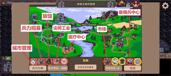✦医疗中心:心形图标为医疗中心,可以在战斗后救活一半的战败部队,被救活的士兵将加入城镇防驻所;