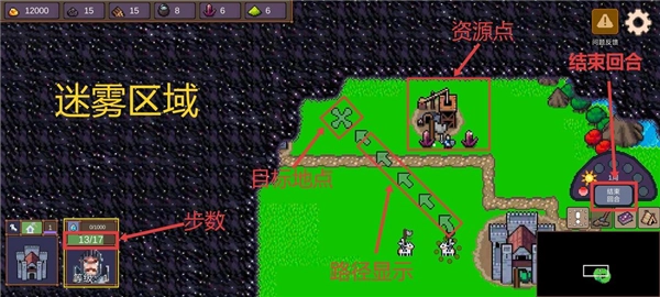 ✦步数恢复:在游玩中,角色移动会减少步数,若步数耗尽就需要点击小地图上方的“结束回合”进行步数恢复。(小贴士:战斗失败会直接扣除大量步数,需要多个回合才能完全恢复行动)