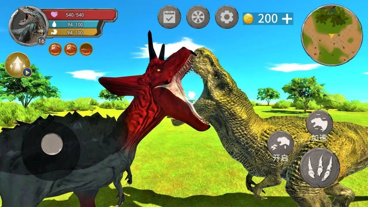 4、不同种类的恐龙之间存在相互竞争的关系,玩家需要战胜其他恐龙,这样才能获取更多的食物与资源。