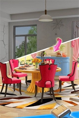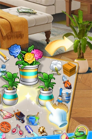 进入游戏后,玩家可以挑选一间待翻新的房间,用手中的金币开启装修流程。系统会提供三种不同风格的家具供玩家挑选,具体搭配完全取决于玩家的个人喜好。要是手头的金币不足,也无需担忧,只需点击右下角,就能进入一个轻松的消除小游戏。通过将相同的工具拖拽到一起进行合成,完成任务即可获取金币。在此过程中,玩家还会逐步积累经验,记得及时升级,这样能获得不少奖励宝箱,对装修而言非常有帮助。