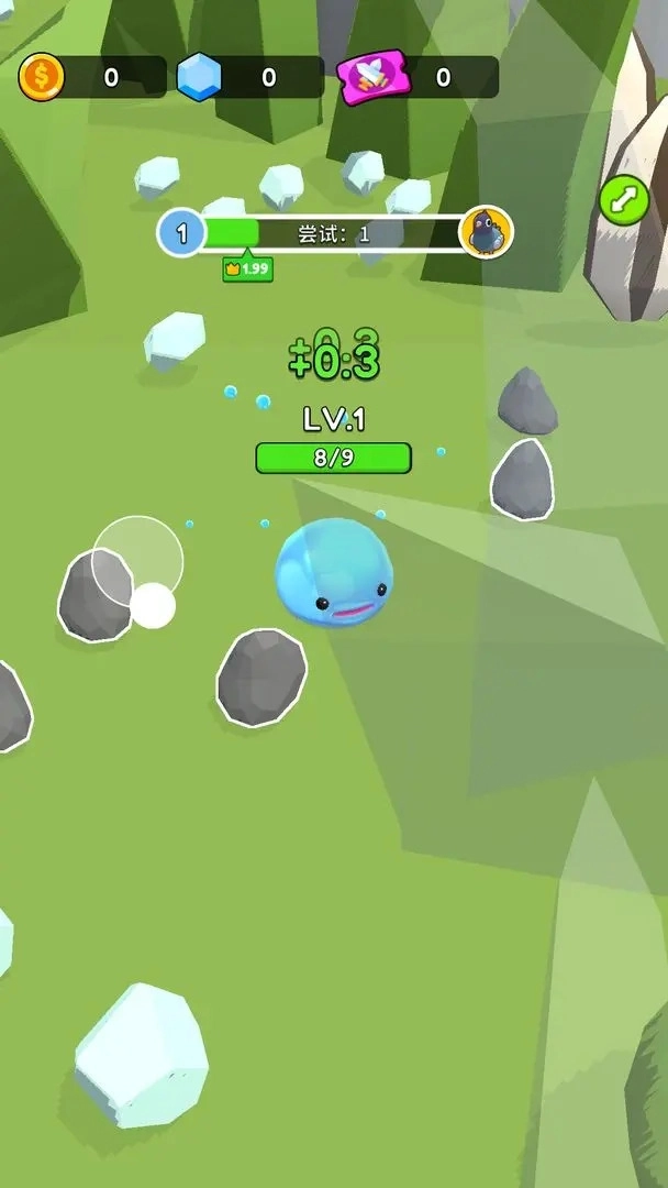 2、在游戏中要小心翼翼地控制好自己的史莱姆实现移动。