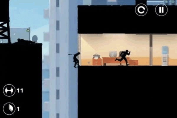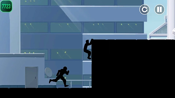 6、游戏将人物弱化成黑色的影子,让你的注意力集中在跑酷上面;