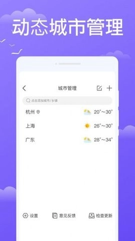 你也能够在城市里添加别的区域,并且马上刷新天气。
