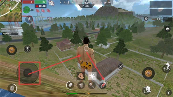 1、通过左下角的移动轮盘操控角色移动到建筑区域,利用下方的【医疗道具】保持状态,并且留意上方的倒计时以及【小地图】的区域提示。