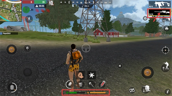 4、在户外区域,通过右上角【武器栏】切换已装备的武器,同时关注状态条,保持战斗状态的稳定以应对潜在敌人。