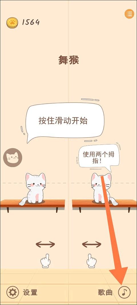 1、进入Duet Cats游戏后,点击右下角箭头指向的歌曲图标。