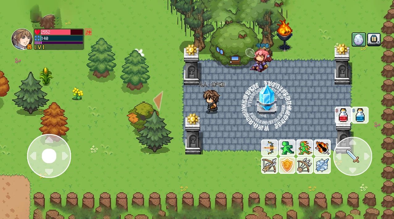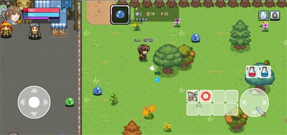 3、游戏界面的左边控制角色的移动,右边是物品栏、攻击键和回复药