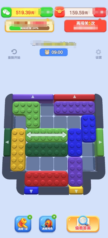 2、不断的来闯关可以获得奖励,更好的来点击滑动消除。