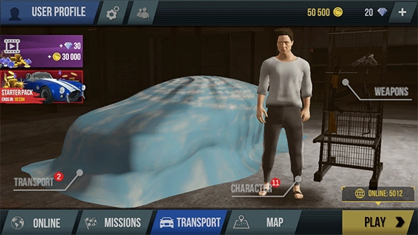 进入火力全开2城市狂热游戏后,点击角色身旁的车辆。