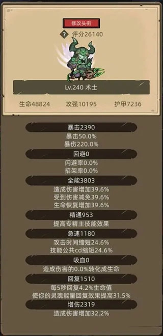 毕业配置:240套装,急速暴击2000,适量吸血保证生存,其余全能增伤。所以武器尽可能选高等级的加强前排,毕业武器落日之杖、勇士的靴匕。橡木之心换狂暴羽毛。随从换光明使者、黑色幼龙。