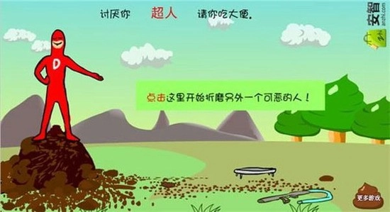 作为一款休闲搞笑类游戏,2025年正版安卓版大便超人以荒诞的场景为舞台,为玩家提供了情绪宣泄的出口。大便超人的独特设定让玩家可以自定义恶搞对象的名称,之后化身为超级英雄,借助直观简单的操作向目标投掷排泄物,带来无厘头的爆笑体验。
