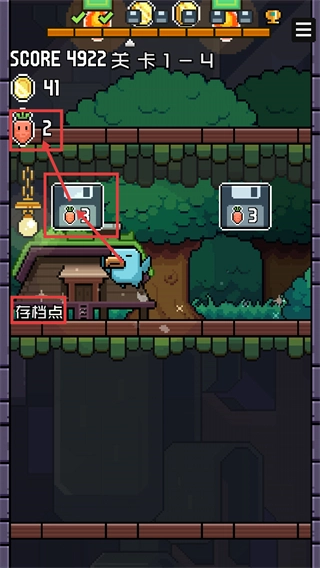 1、在【关卡1-3】中操控蓝色小鸟收集场景里的【胡萝卜】,与此同时要确认【存档点】已完成存档,这样既能提升资源,又能保障进度不丢失。