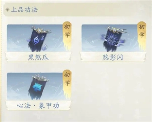 黑煞爪、煞影闪、心法·象甲功。