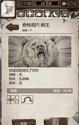 1、兽皮:可以在丘陵击杀熊获得,不过兽皮的获得概率较低,需要杀很多只熊才能获得。