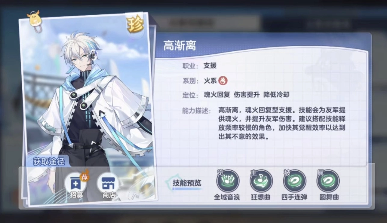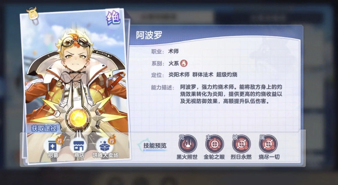 (1)该阵容中的主C,输出能力高,技能自带灼烧效果。
