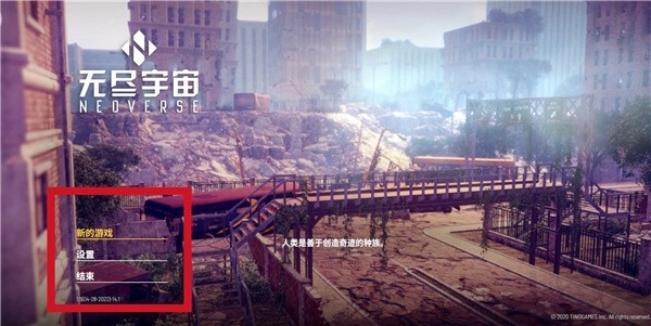 2、进入游戏可以看到新游戏、设置和结束;