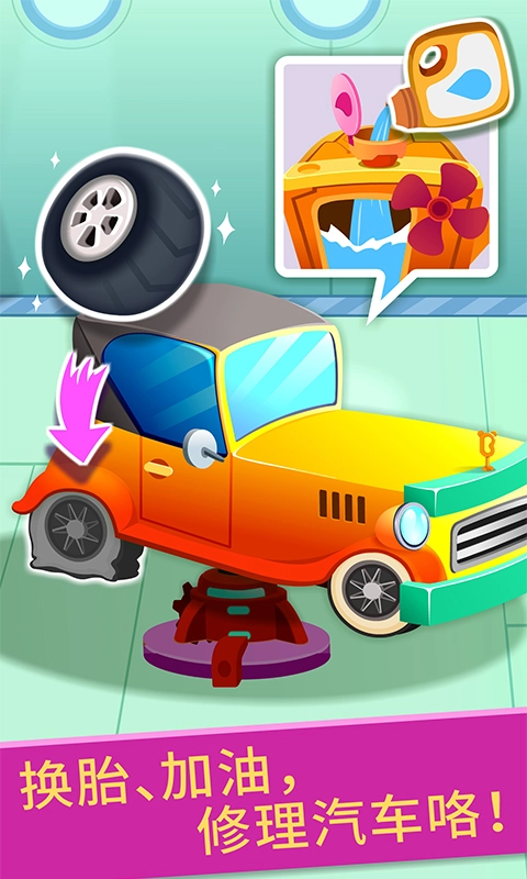 宝宝修车店是宝宝巴士股份有限公司推出的儿童休闲益智游戏,以模拟修车为核心主题,整体采用Q版卡通风格的画面设计。游戏内还设置了多样的互动玩法,能让孩子在游玩过程中认识不同物品的用途与功能。