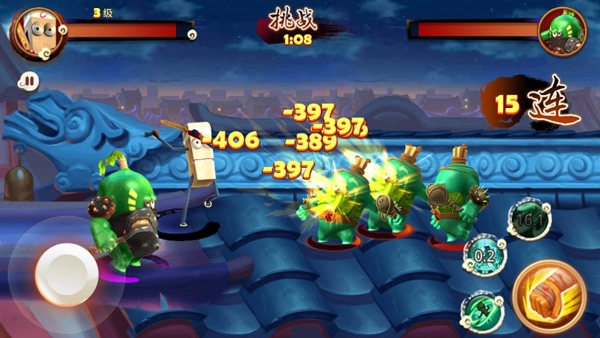 我们在游戏中使用摇杆来控制走位,本作虽然是横版画面,但是却做出了一定的3D立体效果,在走位的时候,除了可以进行左右移动外,也有上下一定的空间,有些类似DNF的走位感觉。