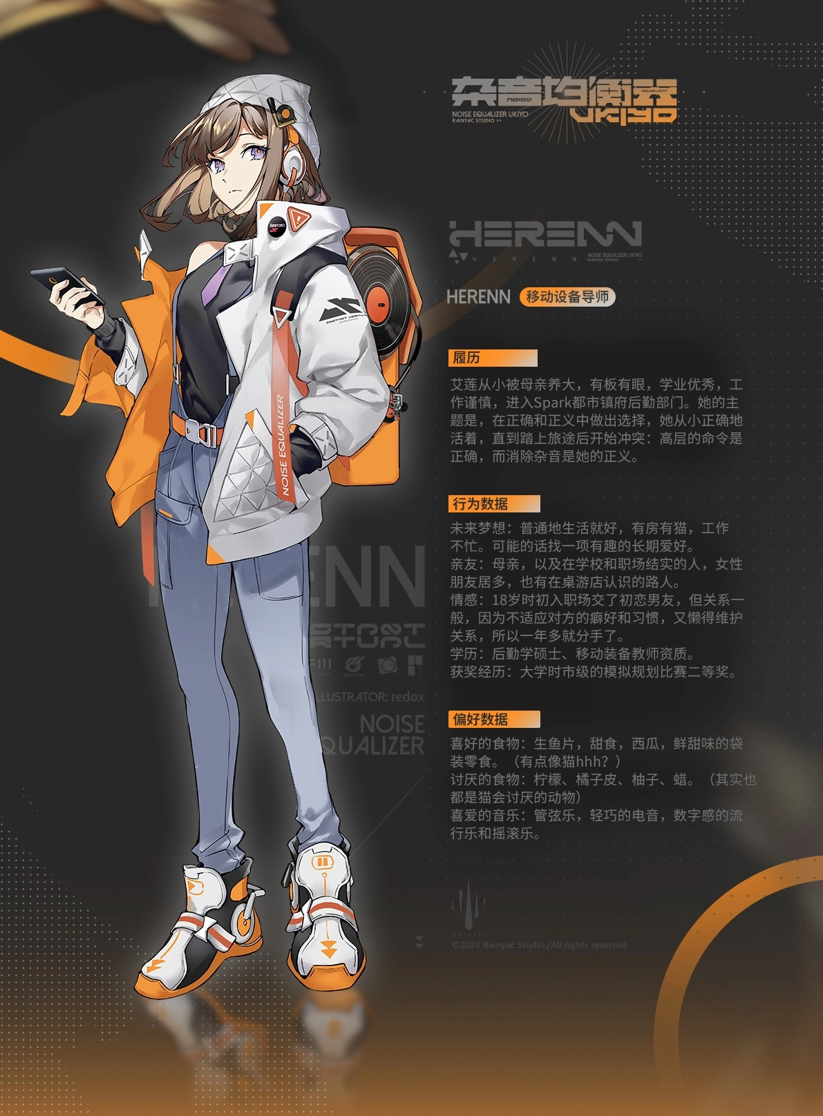 艾莲从⼩被⺟亲养⼤,有板有眼,学业优秀,⼯作谨慎,进⼊Spark都市镇府后勤部⻔。她的主题是,在正确和正义中做出选择,她从⼩正确地活着,直到踏上旅途后开始冲突:⾼层的命令是正确,⽽消除杂⾳是她的正义。