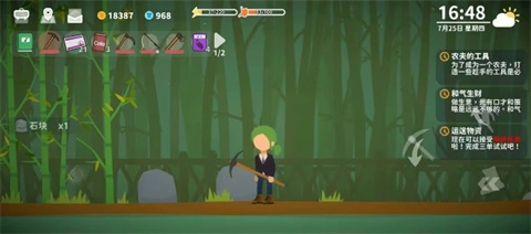 石头是在竹林左边,会阻挡人物移动的石头,需要十字镐敲碎,获得石块。还没发现铁矿石在哪。