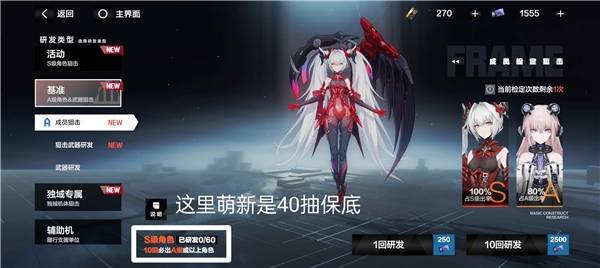 ① 基准池40保底S在正常进行游戏到大约指挥官等级50级时就能攒够基准券抽出,不建议使用黑卡。